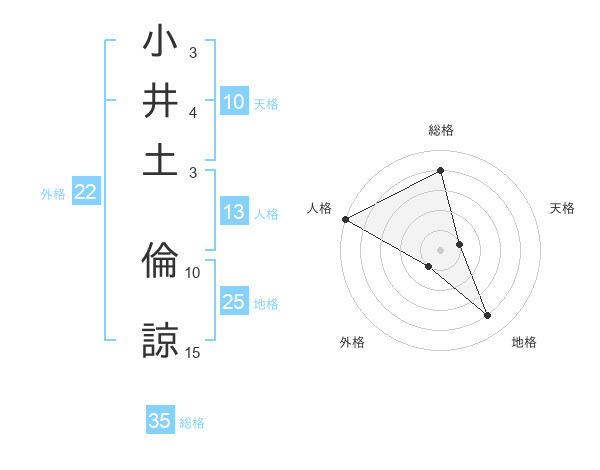 小井土 倫諒さんを姓名の画数から五運を鑑定