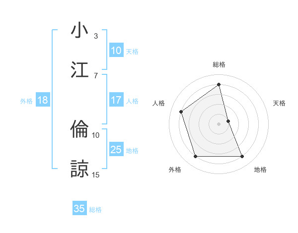 小江 倫諒さんを姓名の画数から五運を鑑定