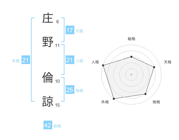 庄野 倫諒さんの外格は21画の5点!