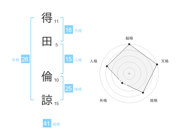 得田 倫諒さんを姓名の画数から五運を鑑定