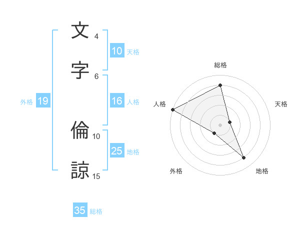 文字 倫諒さんの総格は35画の4点!