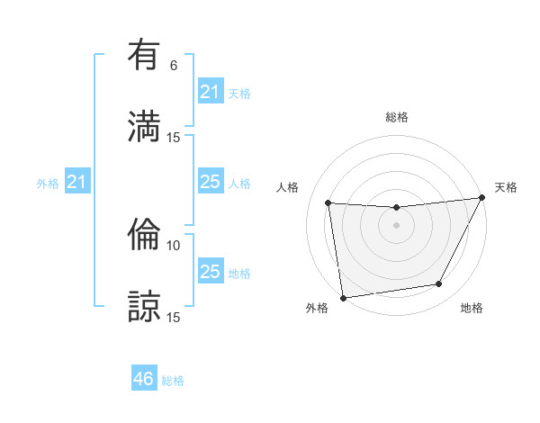 有満 倫諒さんの外格は21画の5点!