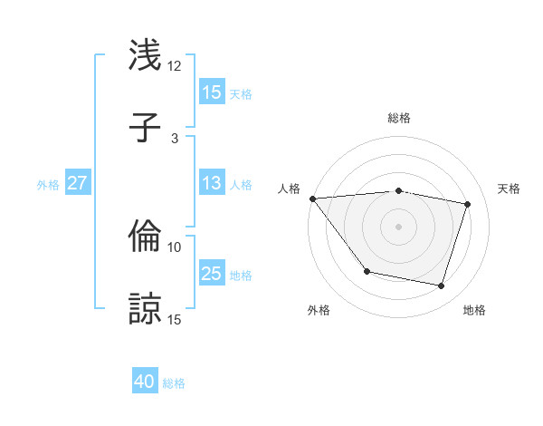 浅子 倫諒さんの天格は15画の4点!