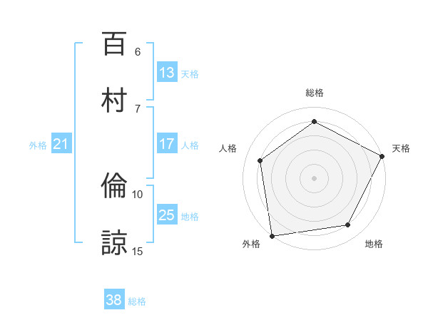 百村 倫諒さんを姓名の画数から五運を鑑定