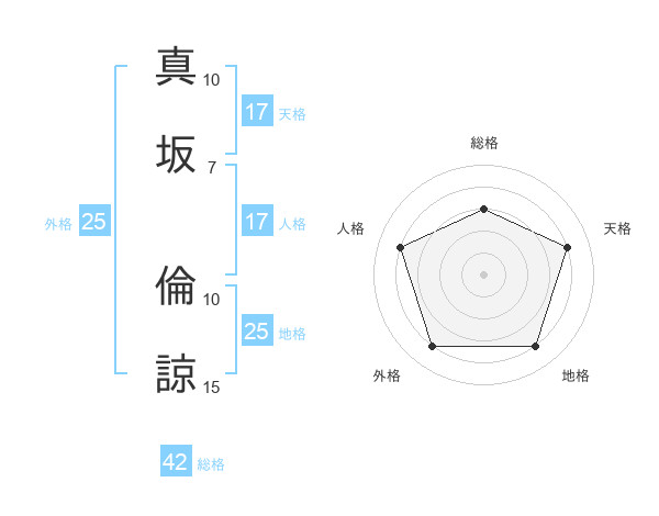 真坂 倫諒さんの天格は17画の4点!