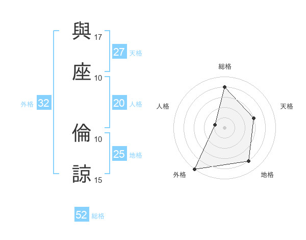 與座 倫諒さんの総格は52画の4点!