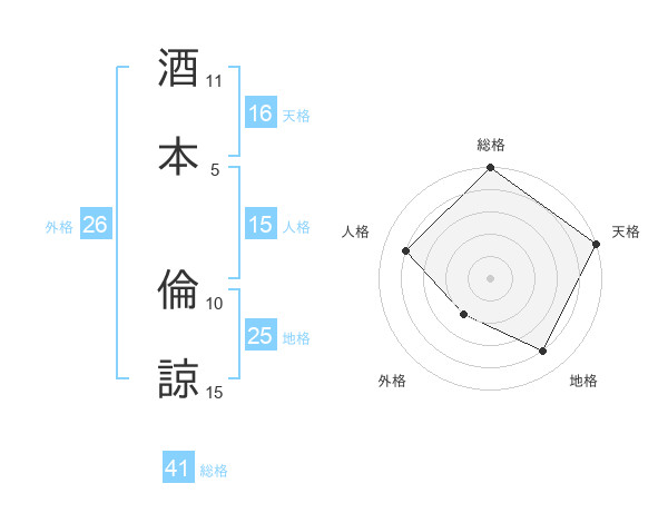 酒本 倫諒さんの総格は41画の5点!