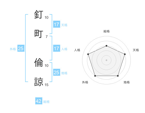 釘町 倫諒さんを姓名の画数から五運を鑑定