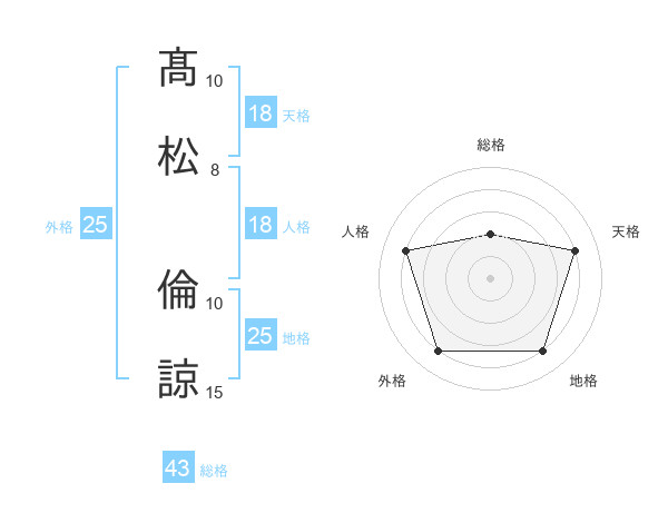髙松 倫諒さんの総格は43画の2点!