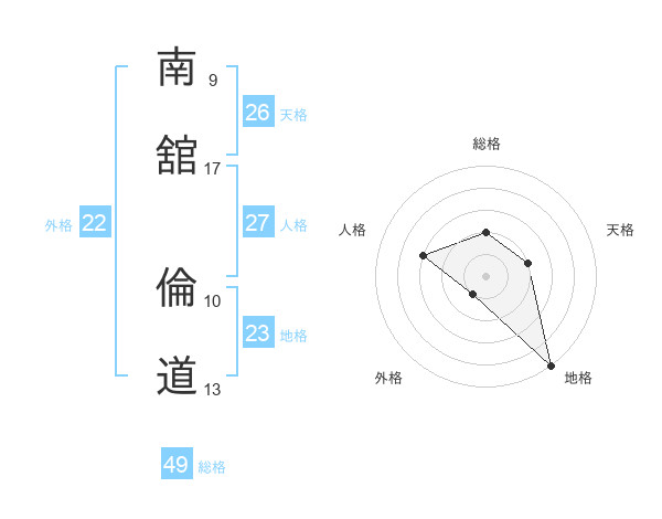 南舘 倫道さんを姓名の画数から五運を鑑定
