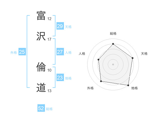 富沢 倫道さんの総格は52画の4点!