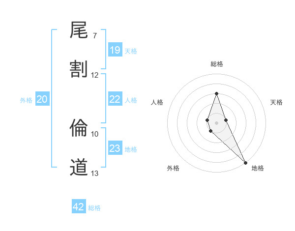 尾割 倫道さんを姓名の画数から五運を鑑定