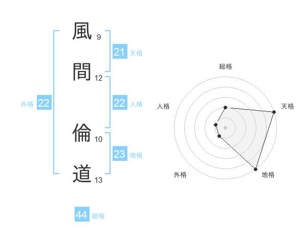 風間 倫道さんの総格は44画の2点!