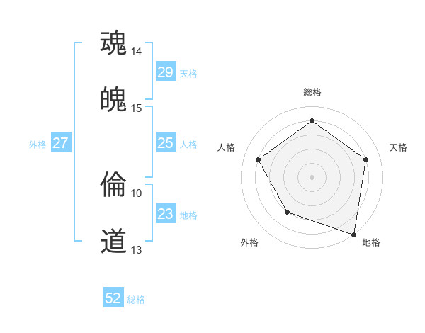 魂魄 倫道さんの総格は52画の4点!