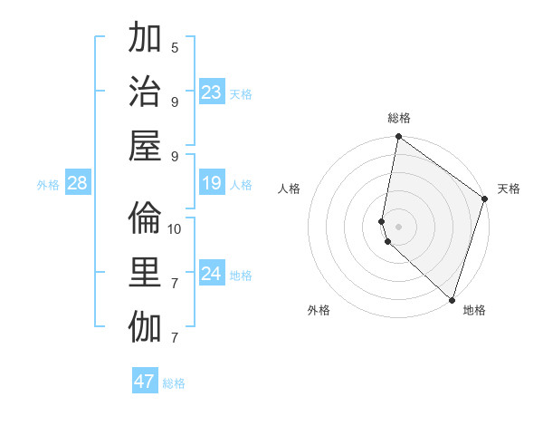 加治屋 倫里伽さんを姓名の画数から五運を鑑定