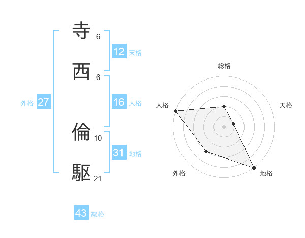寺西 倫駆さんを姓名の画数から五運を鑑定
