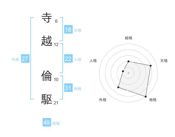 寺越 倫駆さんを姓名の画数から五運を鑑定