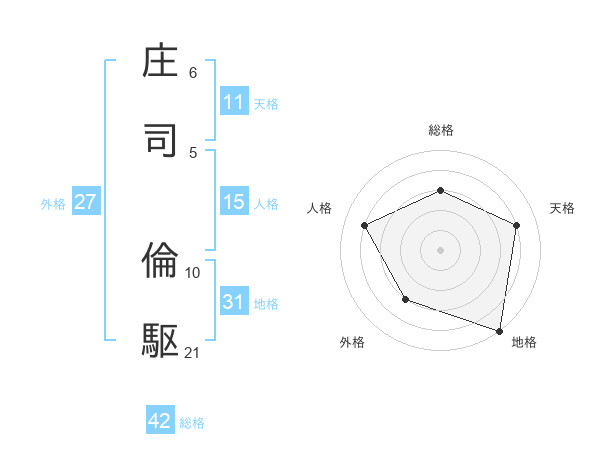 庄司 倫駆さんの地格は31画の5点!