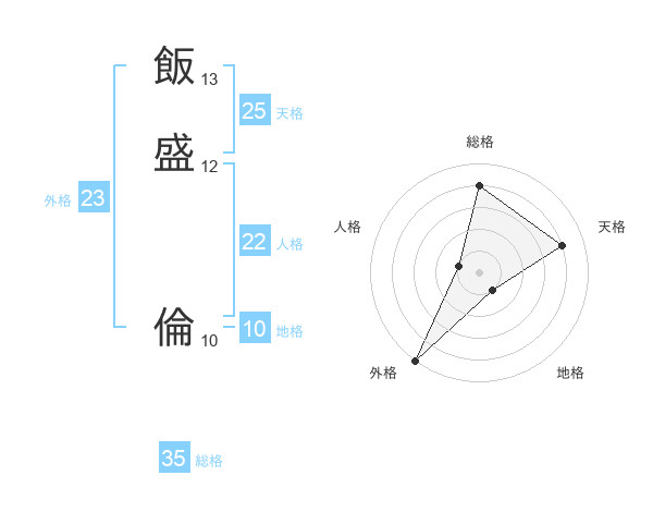 飯盛 倫さんの外格は23画の5点!