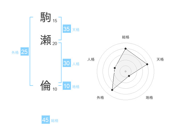 駒瀬 倫さんの総格は45画の4点!