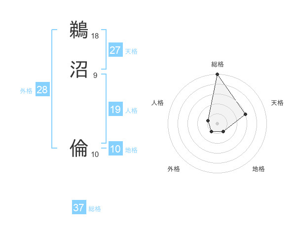 鵜沼 倫さんを姓名の画数から五運を鑑定