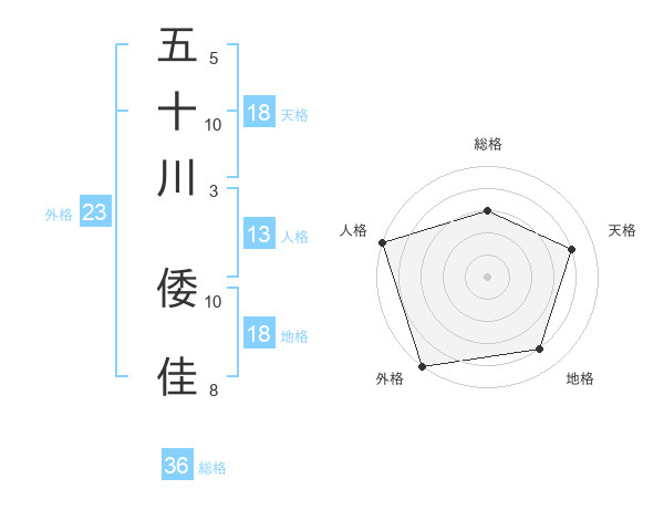 五十川 倭佳さんを姓名の画数から五運を鑑定