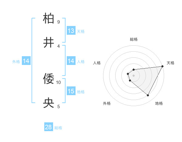 柏井 倭央さんの総格は28画の1点!