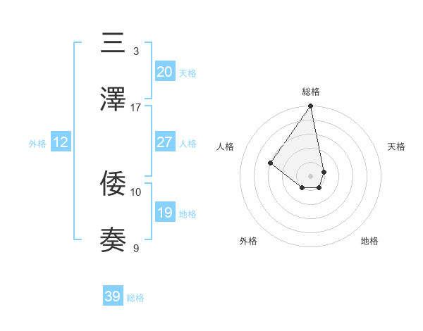 三澤 倭奏さんの総格は39画の5点!