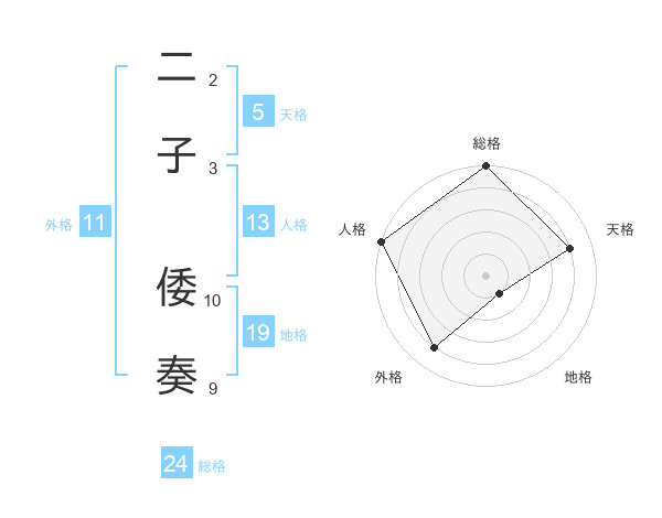 二子 倭奏さんを姓名の画数から五運を鑑定