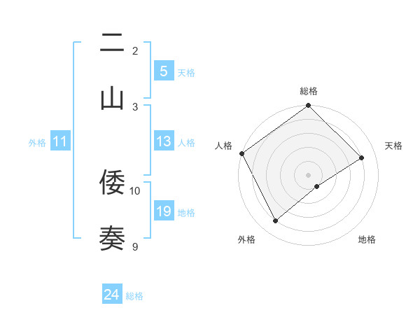 二山 倭奏さんの総格は24画の5点!