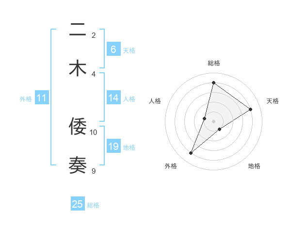 二木 倭奏さんの天格は6画の4点!