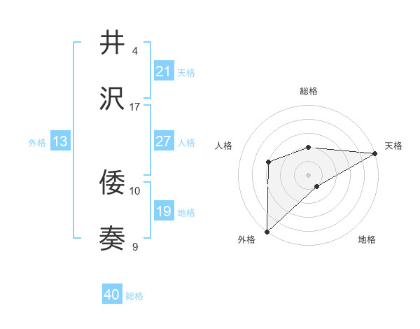 井沢 倭奏さんを姓名の画数から五運を鑑定