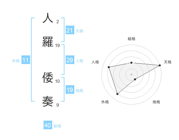 人羅 倭奏さんを姓名の画数から五運を鑑定