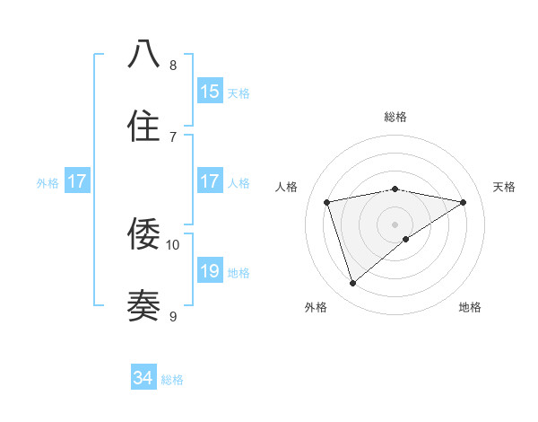 八住 倭奏さんの外格は17画の4点!