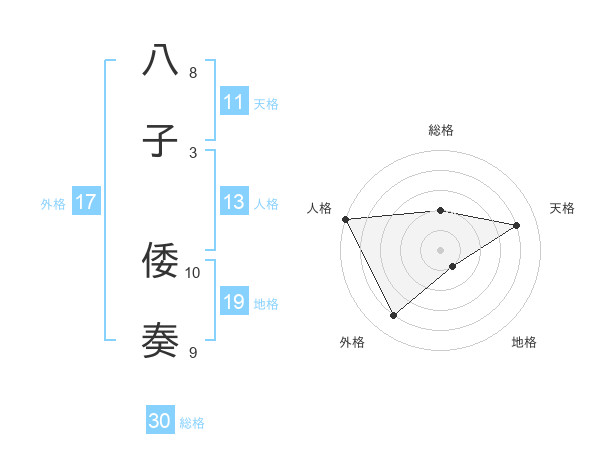 八子 倭奏さんを姓名の画数から五運を鑑定