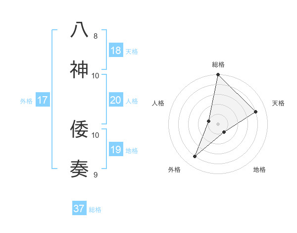 八神 倭奏さんを姓名の画数から五運を鑑定