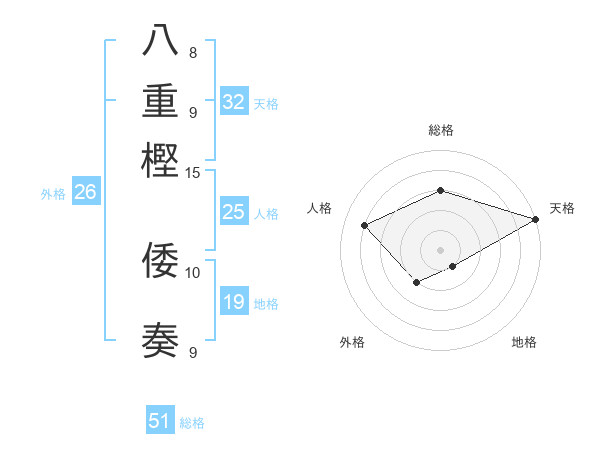 八重樫 倭奏さんを姓名の画数から五運を鑑定
