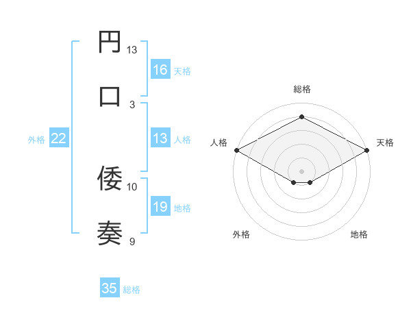 円口 倭奏さんの総格は35画の4点!