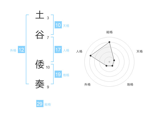 土谷 倭奏さんの総格は29画の4点!