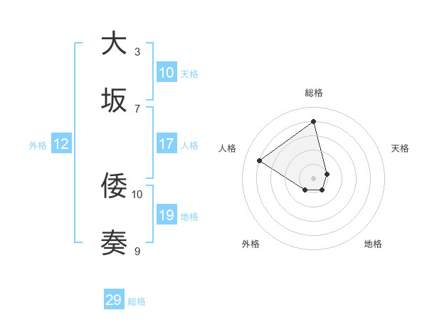 大坂 倭奏さんを姓名の画数から五運を鑑定