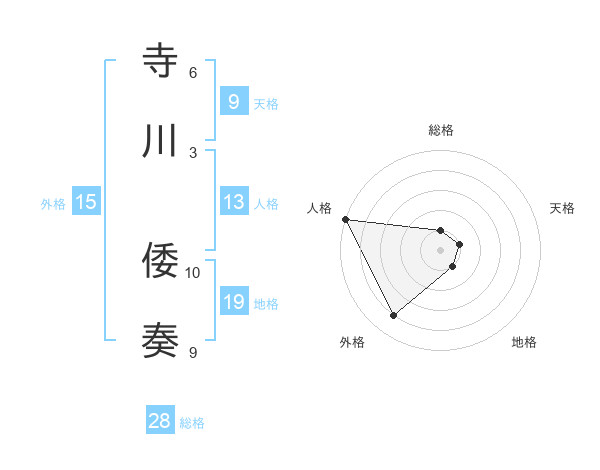 寺川 倭奏さんの総格は28画の1点!