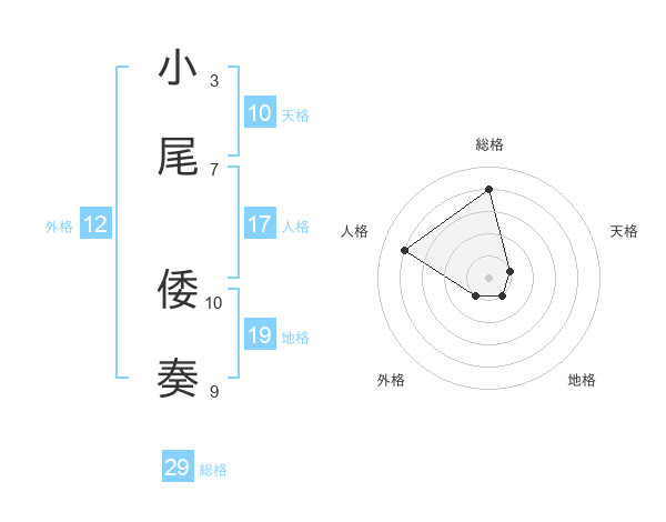 小尾 倭奏さんの総格は29画の4点!