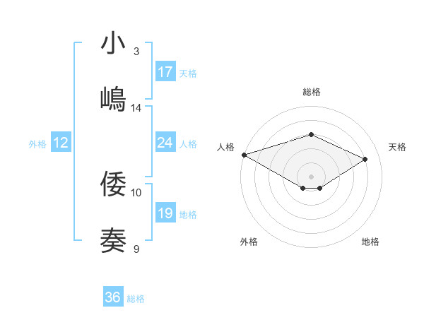 小嶋 倭奏さんの天格は17画の4点!