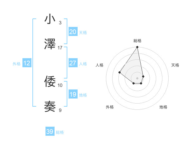 小澤 倭奏さんを姓名の画数から五運を鑑定