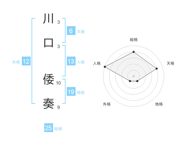 川口 倭奏さんを姓名の画数から五運を鑑定