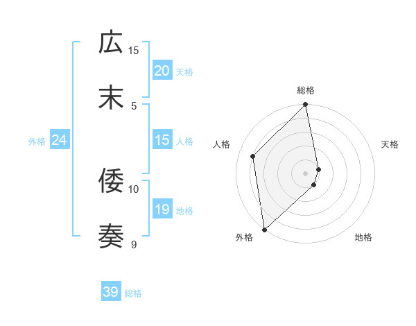 広末 倭奏さんを姓名の画数から五運を鑑定