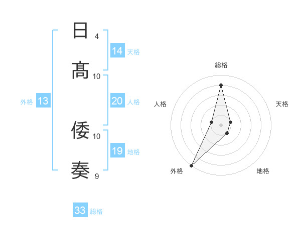 日髙 倭奏さんの総格は33画の4点!