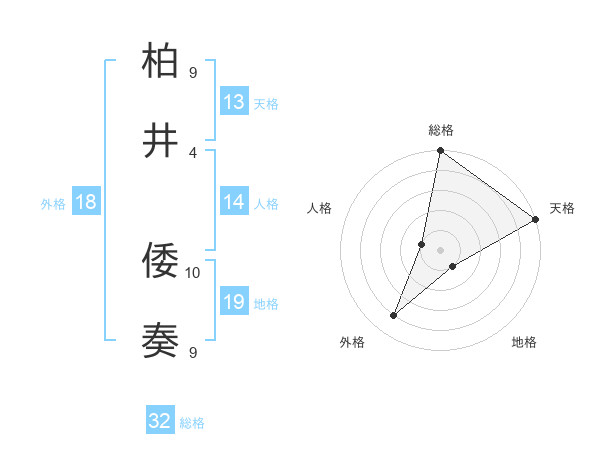 柏井 倭奏さんを姓名の画数から五運を鑑定
