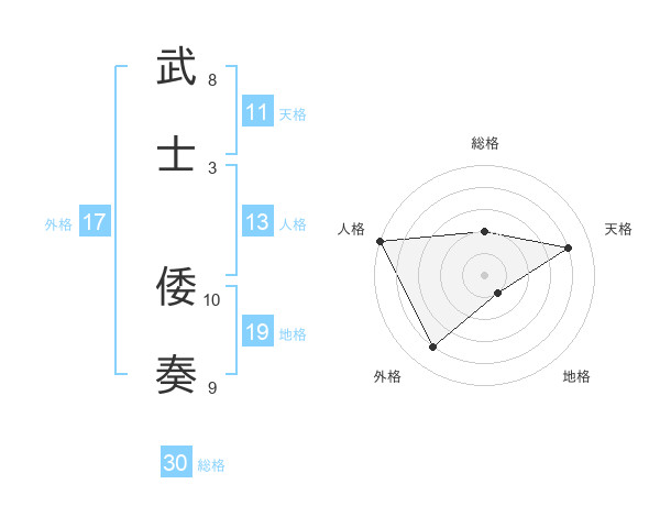 武士 倭奏さんの総格は30画の2点!