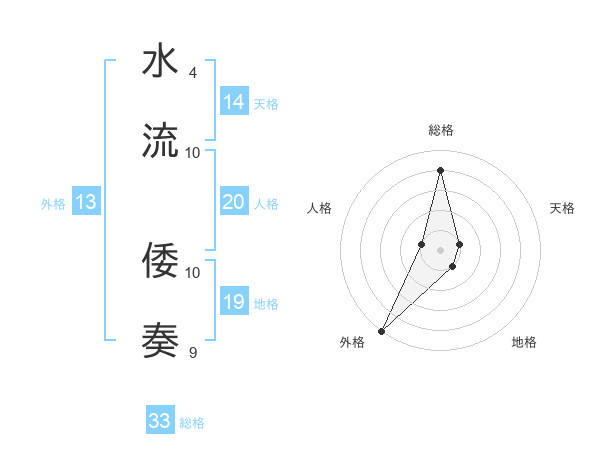 水流 倭奏さんを姓名の画数から五運を鑑定